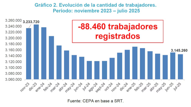 ¿Sabés por qué en los últimos años se siente que cada vez hay menos trabajo en la provincia de Buenos Aires? Entre diciembre de 2023 y julio de 2025, la cantidad de empresas y trabajadores registrados cayó de manera notable, y la información del Centro de Economía Política Argentina (CEPA) lo confirma. Lo que pasó tiene relación directa con la recesión, los ajustes y la paralización de la obra pública durante la gestión de Javier Milei.