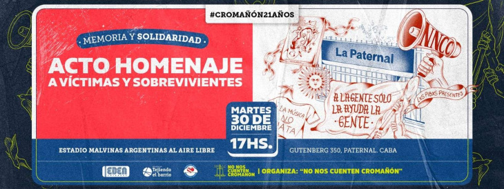En ese marco, el Movimiento Cromañón, integrado por familiares y sobrevivientes del recital de Callejeros, confirmó una jornada de memoria y homenaje que vuelve a ocupar el espacio público como forma de resistencia.